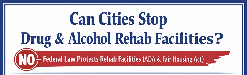 Cities may regulate health, safety, and neutral land-use issues. But they generally cannot block rehab facilities, sober living homes, or recovery housing based on fear, stigma, politics, or neighborhood opposition.